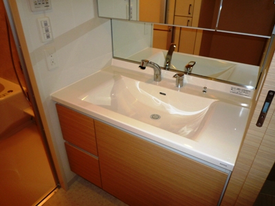 洗面台が大きく全面鏡でとても使いやすそうです。
