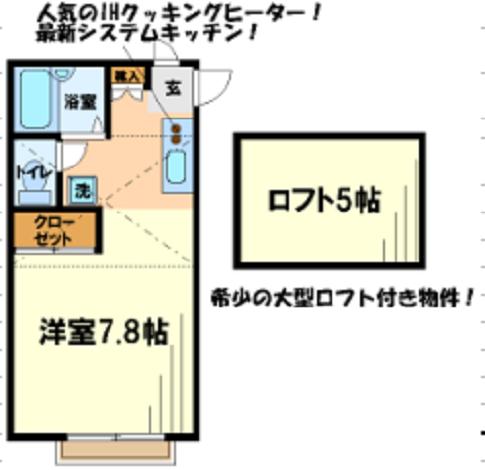 7.8帖の広々とした洋室と5帖もあるロフトが付いています。
