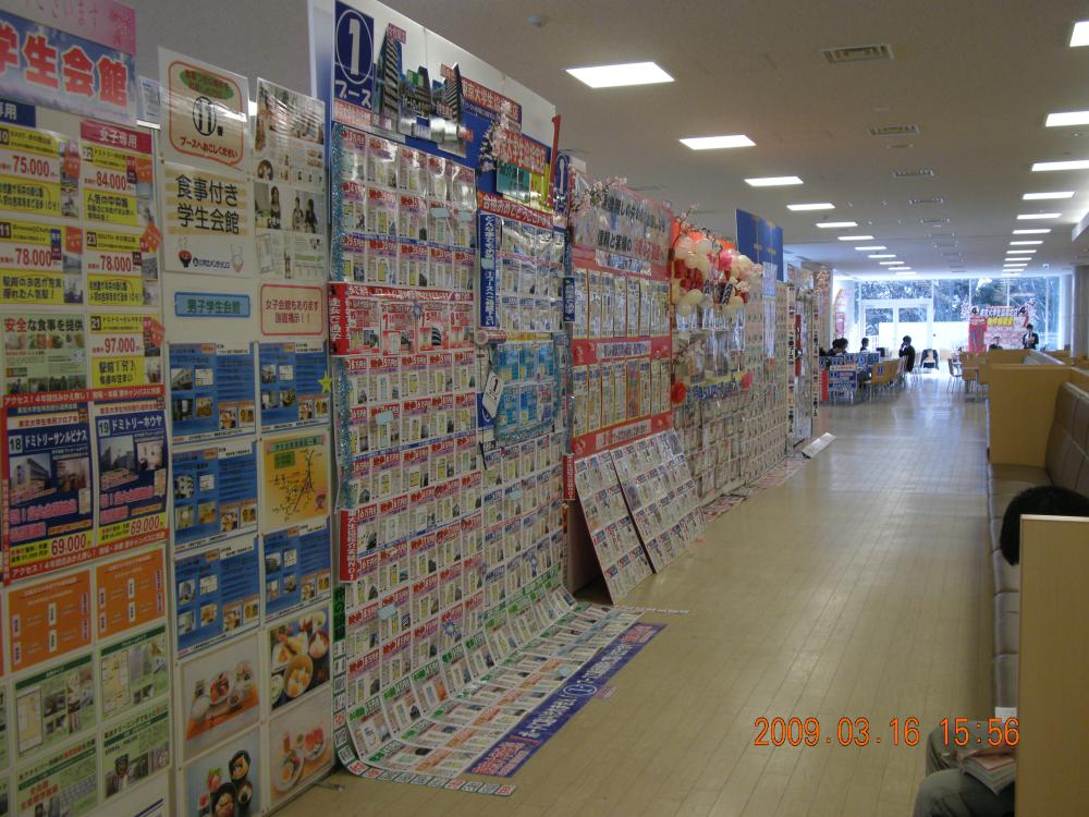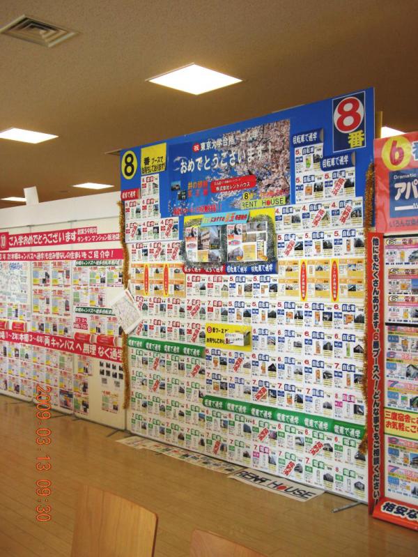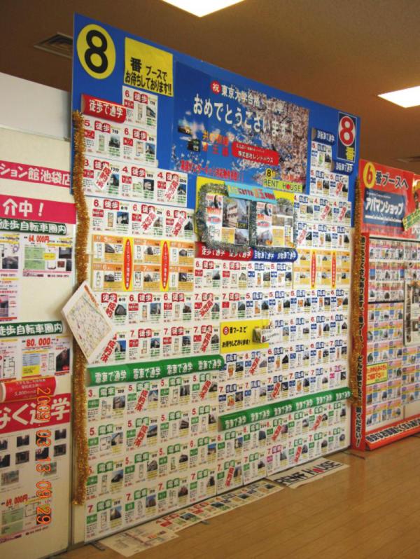 各社の賃貸物件の広告ボードが立ち並び、順路にそって閲覧出来るようになっています。